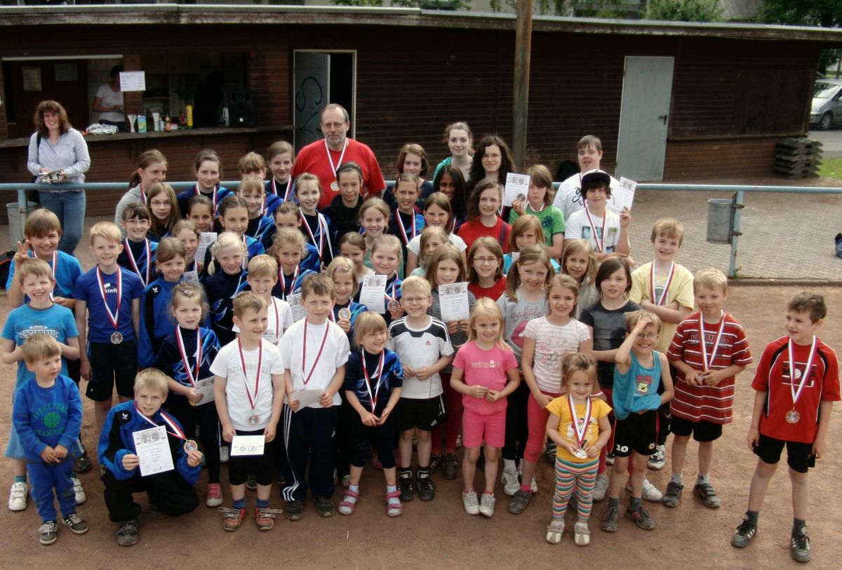 Leider hatten lediglich drei Vereine Teilnehmer gemeldet, aber trotzdem waren etwa 80 Teilnehmer in der Turnhalle oder bei schönstem Wetter auf dem Sportplatz mit viel Spaß bei der Sache.